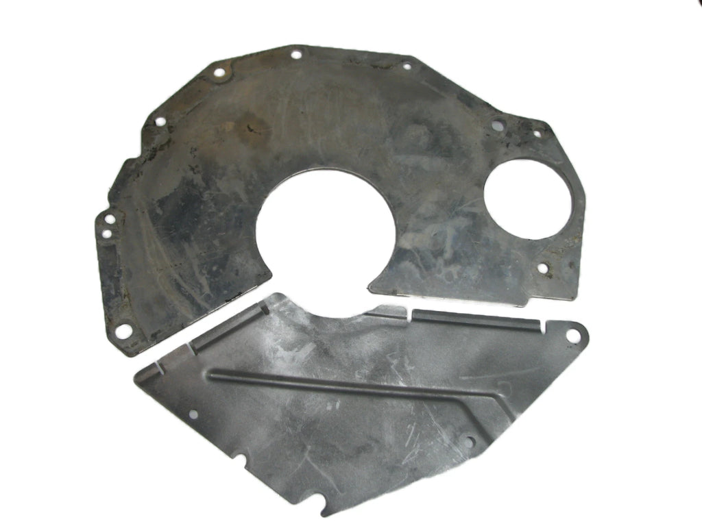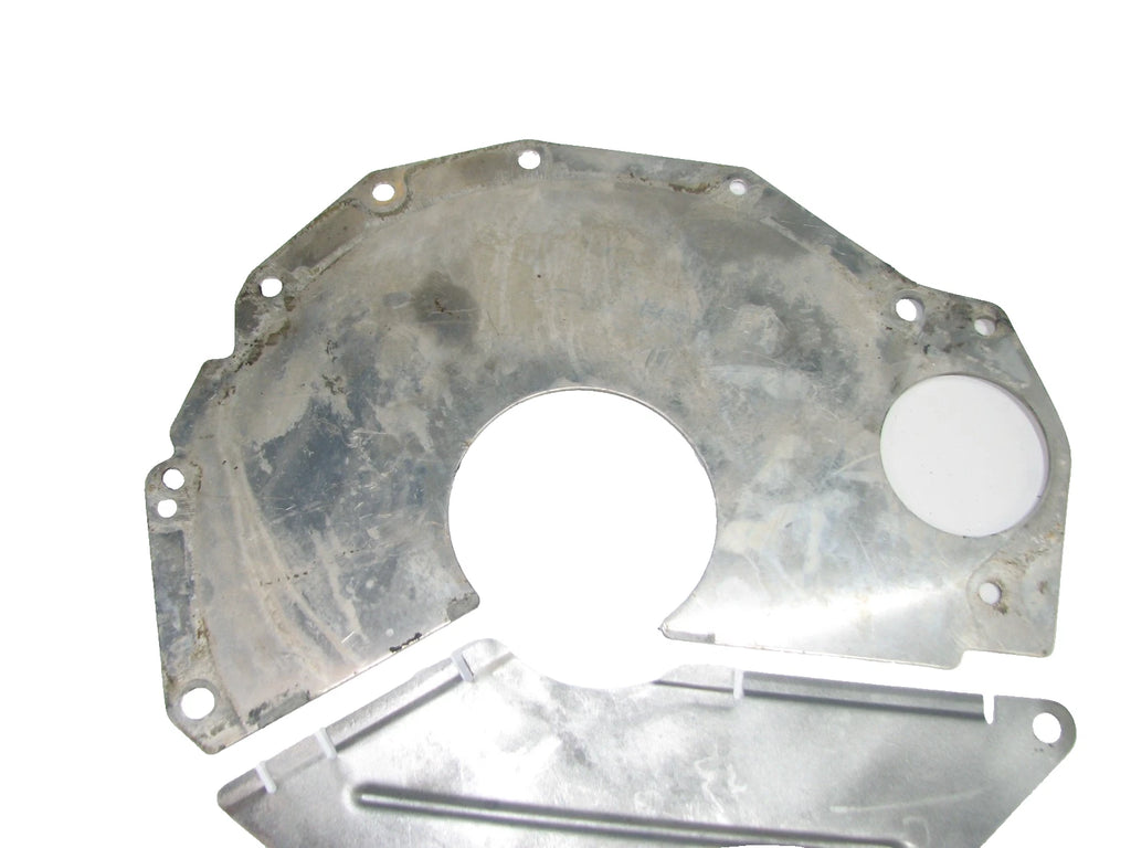 Jeep Cherokee XJ engine to transmission inspection cover plate set in very good condition. Fits Cherokee XJs with an automatic transmission 91-01.